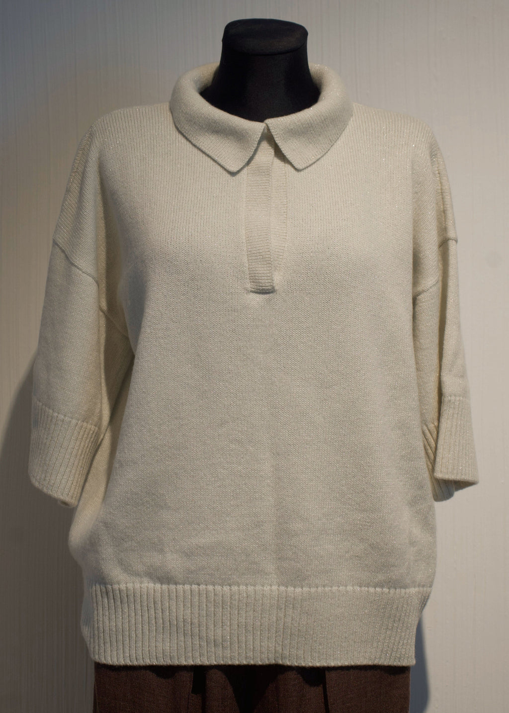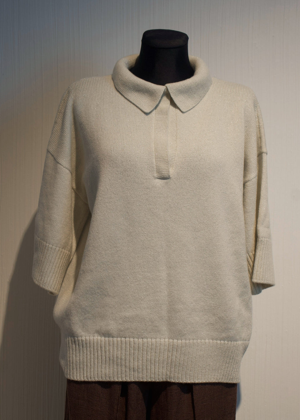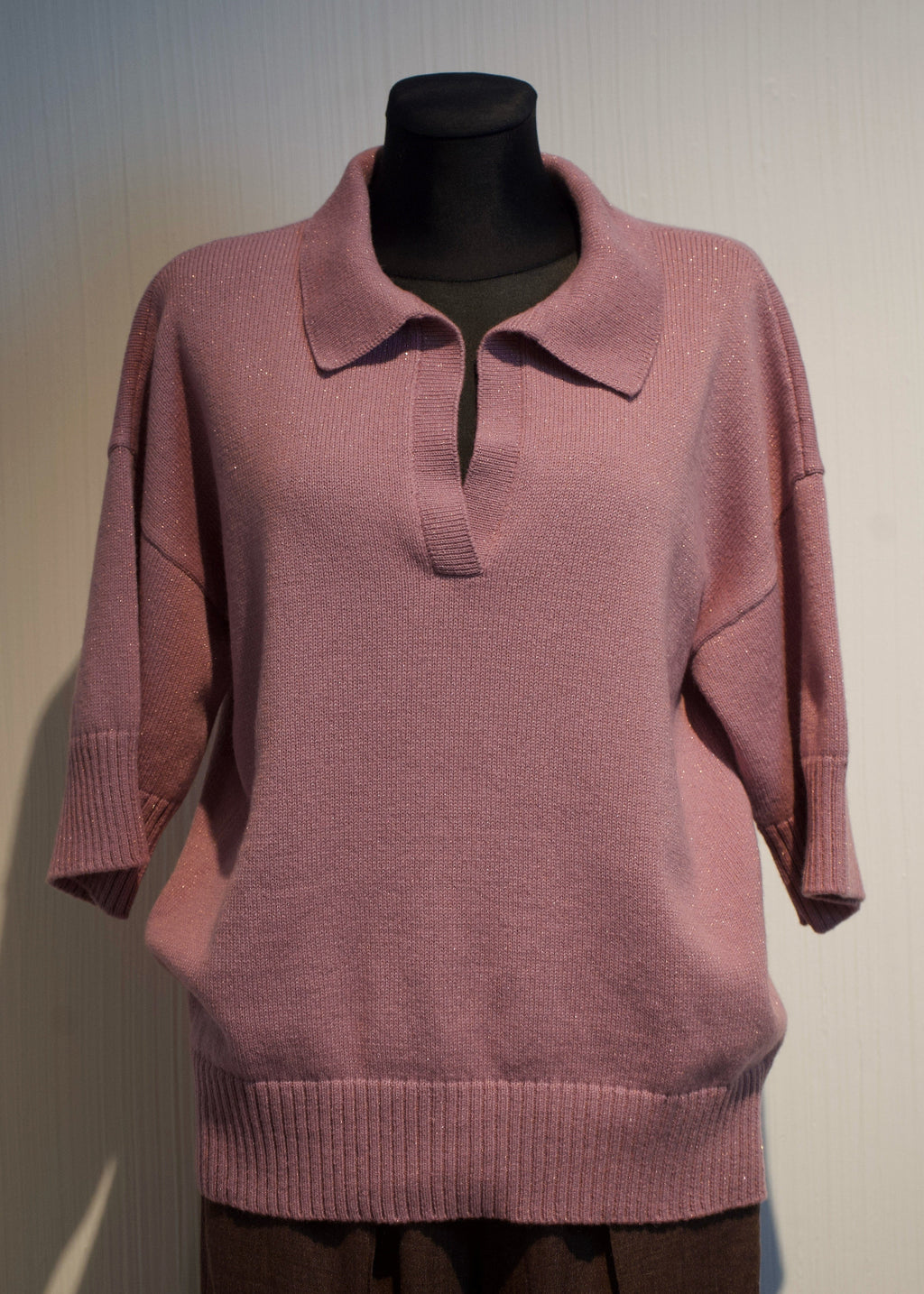Elegants kašmira Polo džemperis ar smalku, diskrētu spīdumu — sievišķīgs, izsmalcināts un nevainojami maigs.