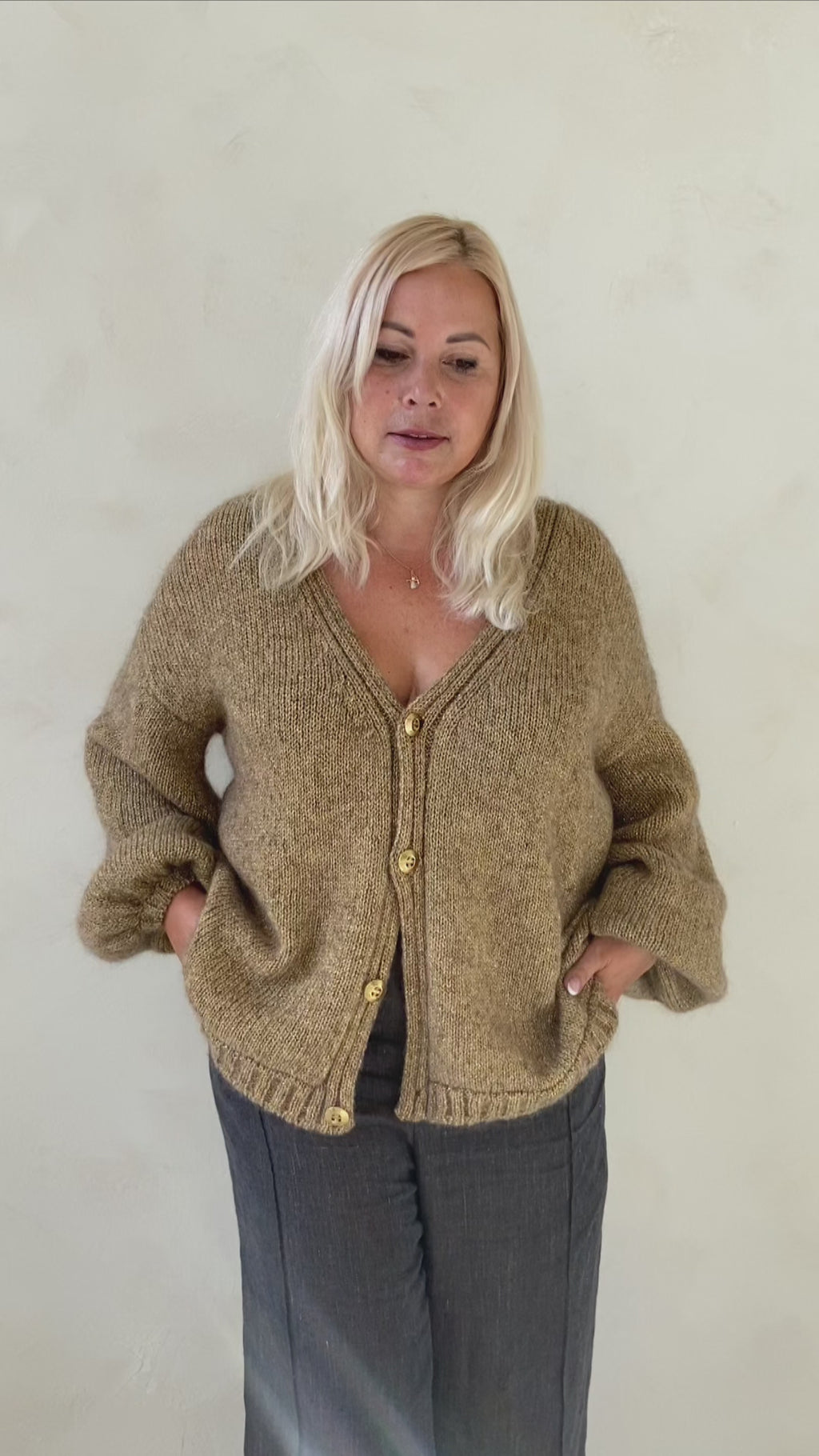 Moderna, mūsdienīga pogājama jaka ar kuplinātām piedurknēm. Dzijas pavedienā caurvijas metāliskas šķiedras diegs, kas piedod gaumīgu, neuzbāzīgu spīdumu.To viegli kombinēt ar ikdienas apģērbu, gan skaistu svētku tērpu.